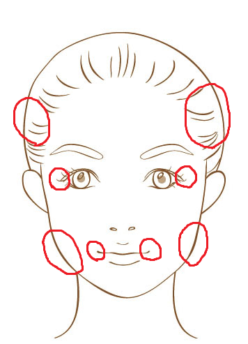 ・側頭部 ・目元 ・口角 ・エラ +頭皮に5~10本