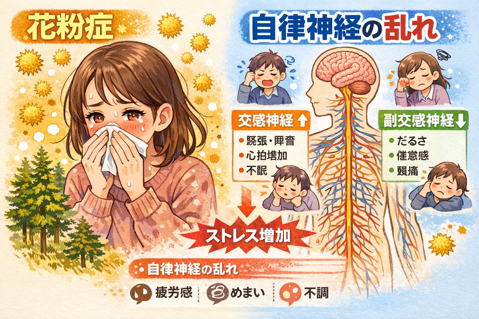 花粉症症状による倦怠感・頭痛・不眠は自律神経の乱れによるものかも!?